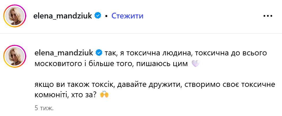 Параллельно в сети появились обвинения, что Мандзюк сама раньше общалась на русском и даже вела соцсети на этом языке.