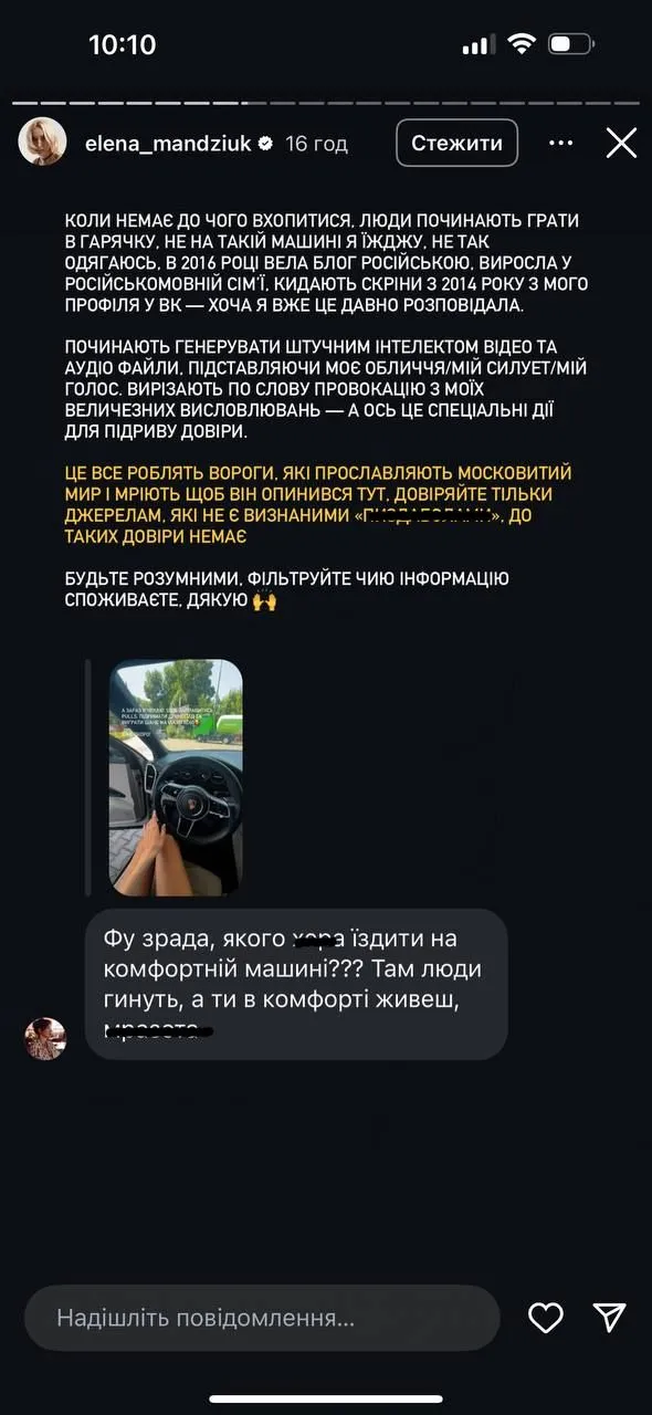 Блогер также опубликовала фрагменты разговора с Мандзюк.