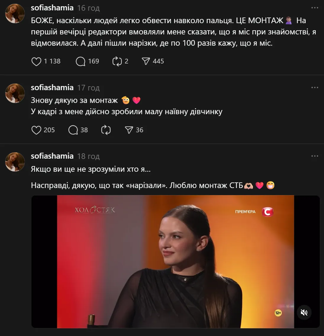 София Шамия возмутилась тем, как ее показали на "Холостяке" / Скриншот с Threads