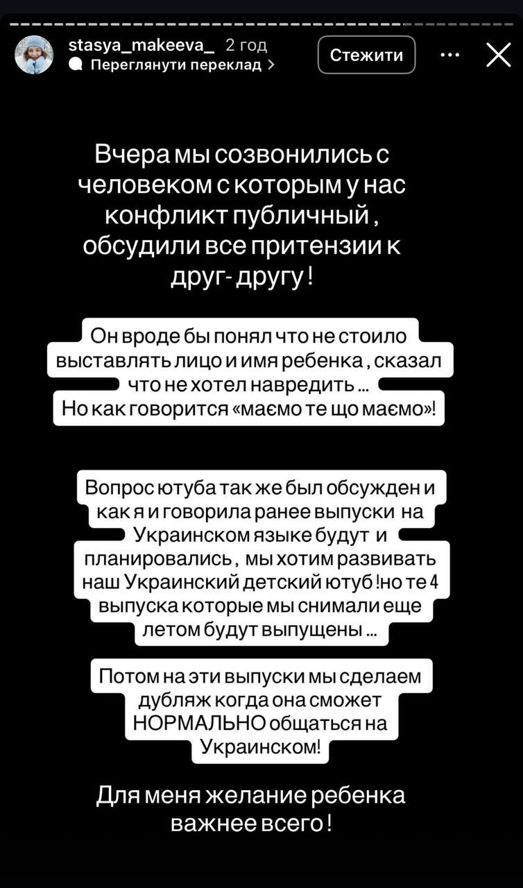 Позже Стася заявила, что ее дочь травят в сети. Семью Макеевых поддержали блогеры Ольга Филева, Симбочка и Юля Верба.