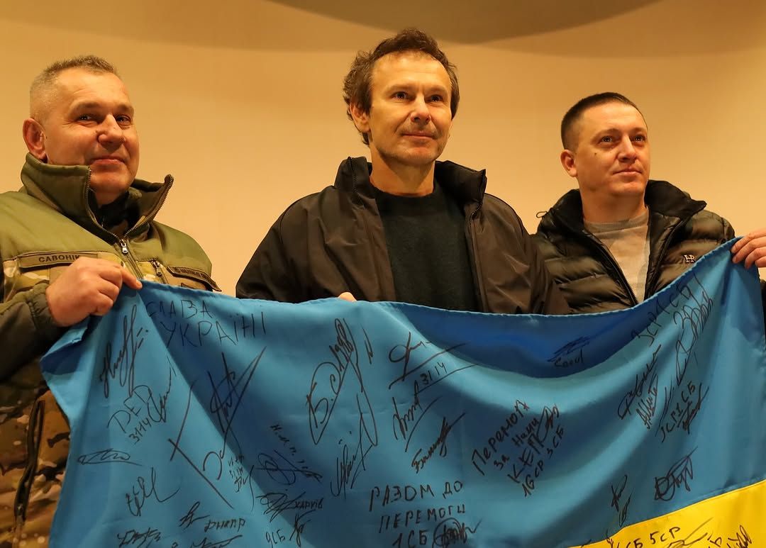 Святослав Вакарчук поддерживает украинских защитников с первых дней полномасштабного вторжения. Он ездит в зону боевых действий, выступает для военных и их семей, поддерживает боевой дух раненых воинов в госпиталях.