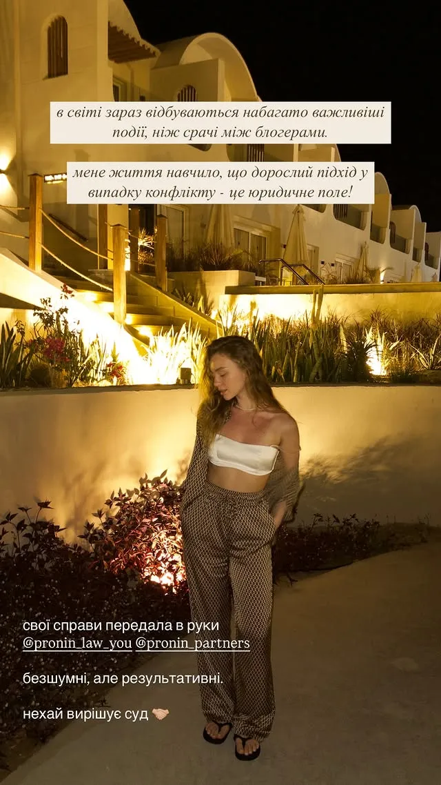 Влад Лиманюк проанализировал сториз блогера на время, когда она должна была выполнять условия соглашения. По его словам, реклама (которой вообще не должно было быть) постоянно перевешивала количество "прогрева". По словам бизнесмена, она постоянно подводила и не выполняла обещаний по контенту. А потом уехала в отпуск.