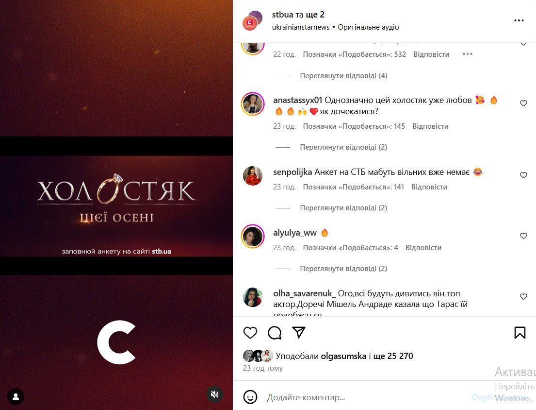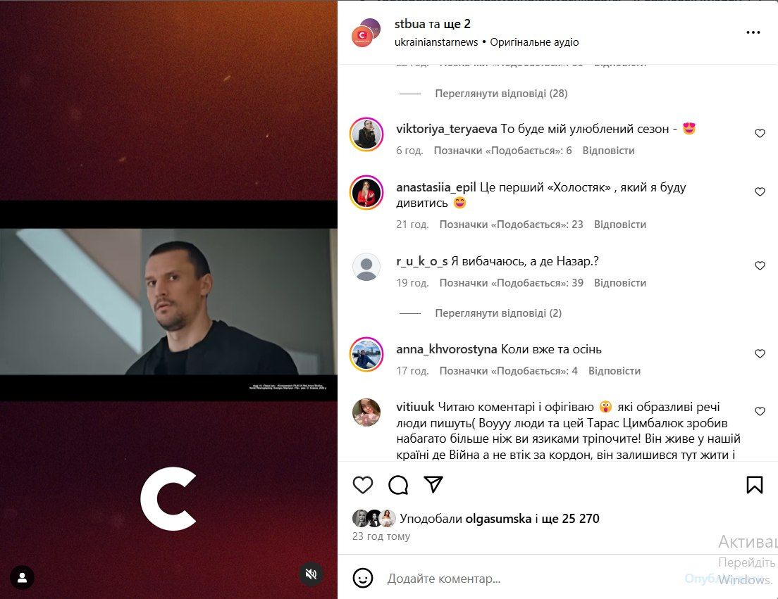 Комментарии под сообщением, где анонсировали, что Цимбалюк – новый "Холостяк" / Скриншот из инстаграма