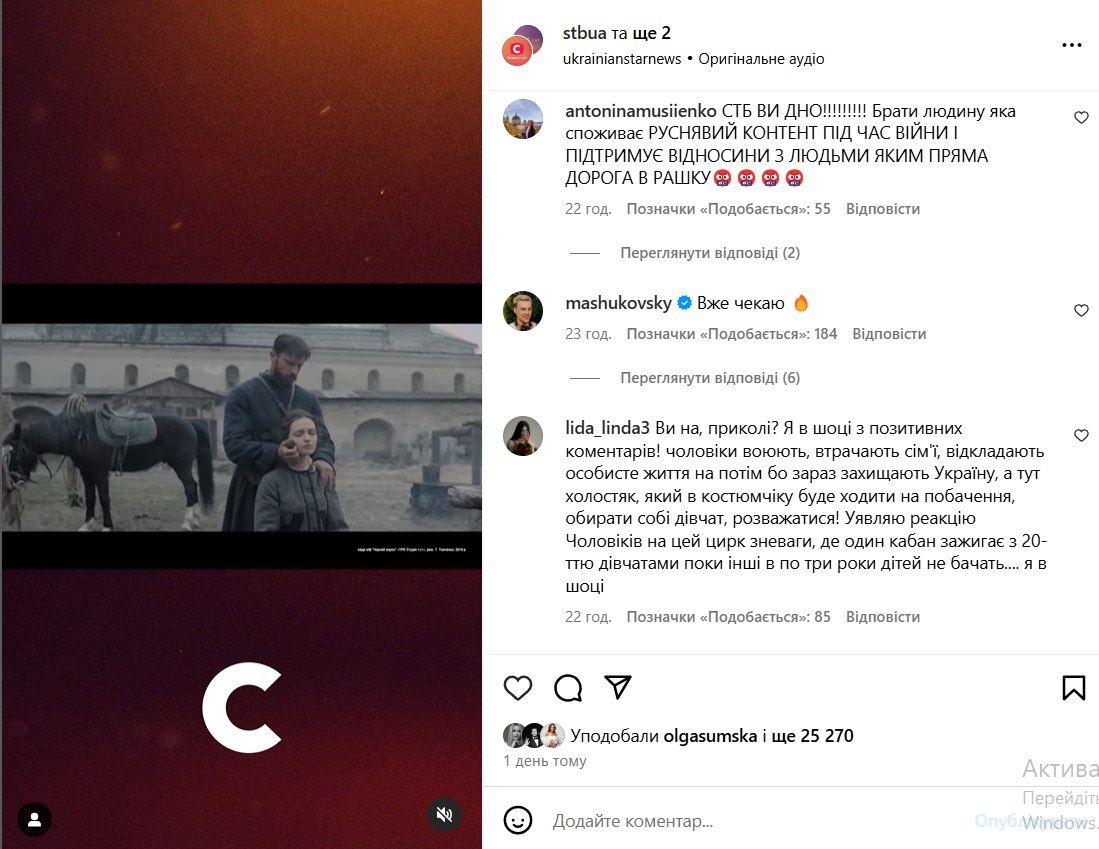- "СТБ – вы дно! Брать человека, который потребляет руснявый контент во время войны и поддерживает отношения с людьми, которым прямая дорога в "Рашку"".