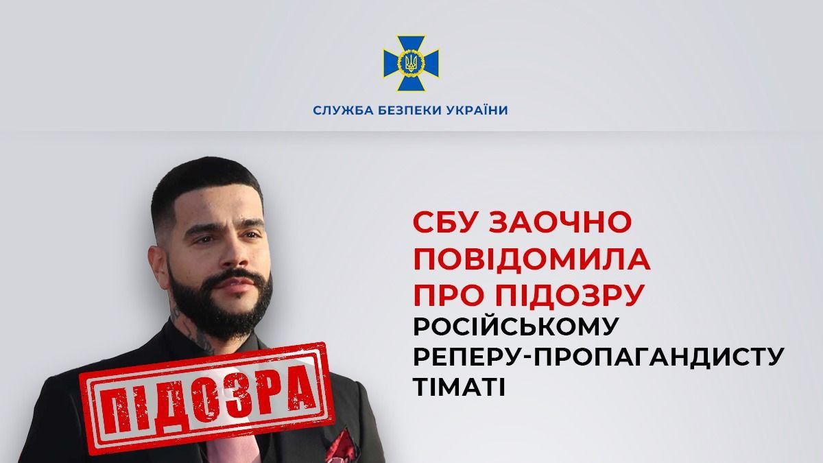 СБУ заочно объявила о подозрении российскому рэперу Тимати, который является одним из активных участников вражеской пропаганды. Он поддерживает российскую агрессию и оккупацию Крыма.
