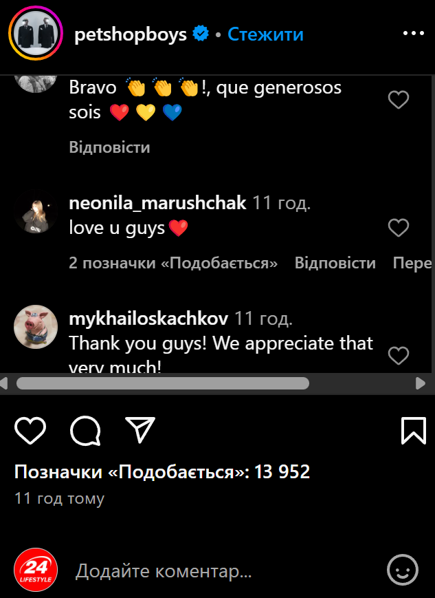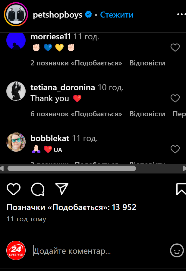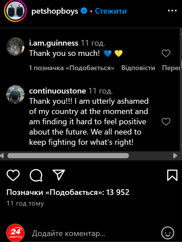 В комментариях под публикацией поклонники поддержали Pet Shop Boys и выразили им благодарность.