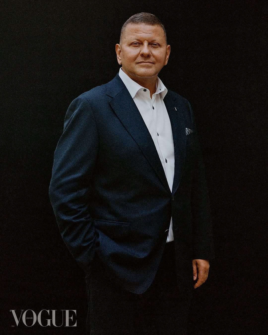 В элегантном темно-синем костюме: Валерий Залужный снялся в фотосессии для Vogue