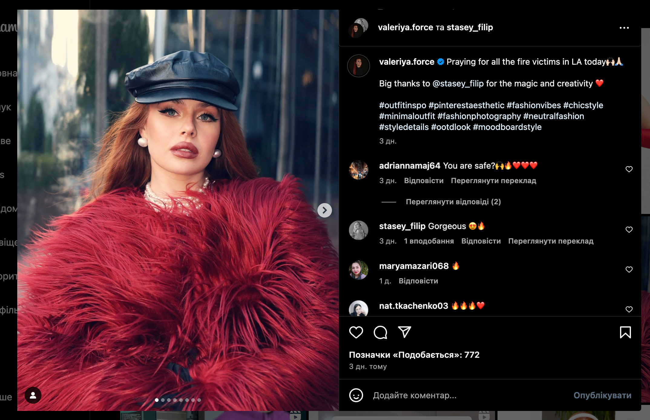 На днях певица опубликовала очередное сообщение, в котором отметила, что молится за жертв, пострадавших в результате пожаров в Лос-Анджелесе, однако за ежедневных погибших и пострадавших в Украине девушка почему-то не вспоминает.