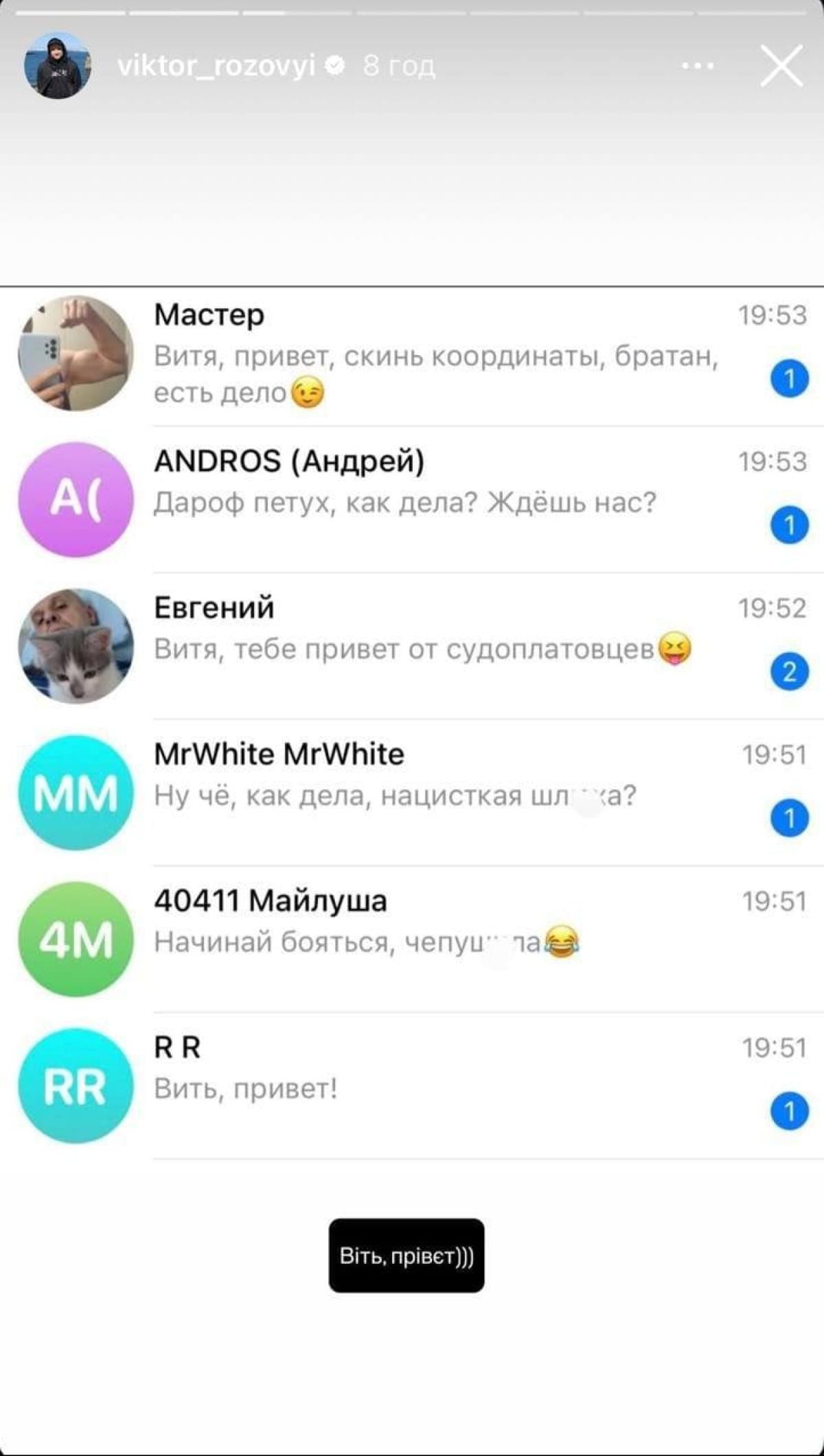 Виктор Розовый показал, как ему угрожают россияне / Скриншоты из инстаграм-сторис