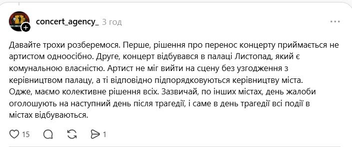 Реакция сети на концерт Козловского после обстрела / Скриншоты с Threads