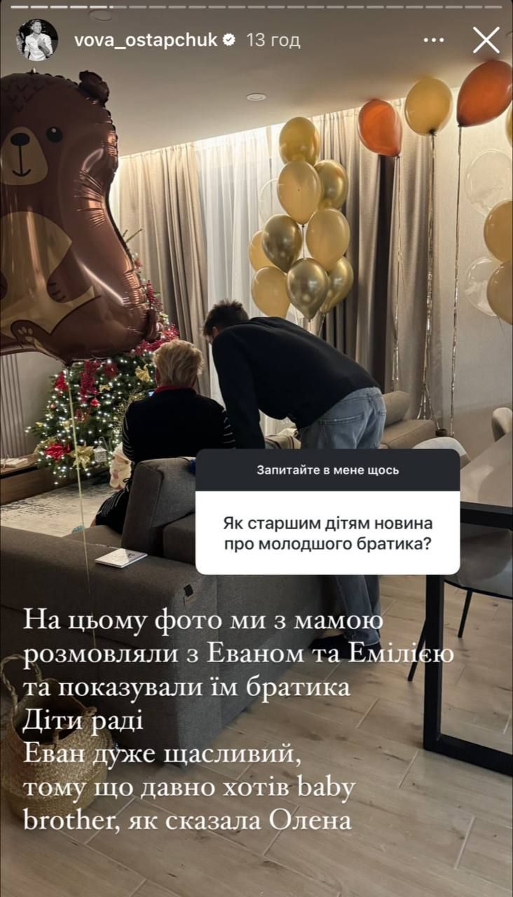 Шоумен рассказал, как его старшие дети отреагировали на новорожденного братика. Сообщает 24 Канал со ссылкой на инстаграм-страницу Остапчука.