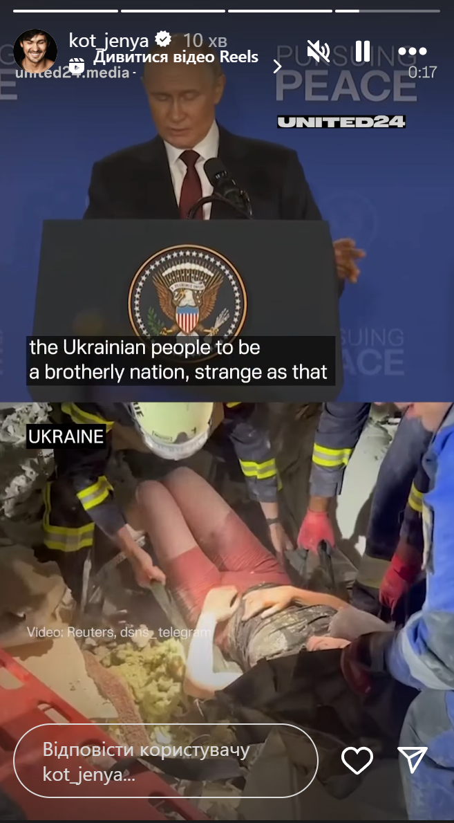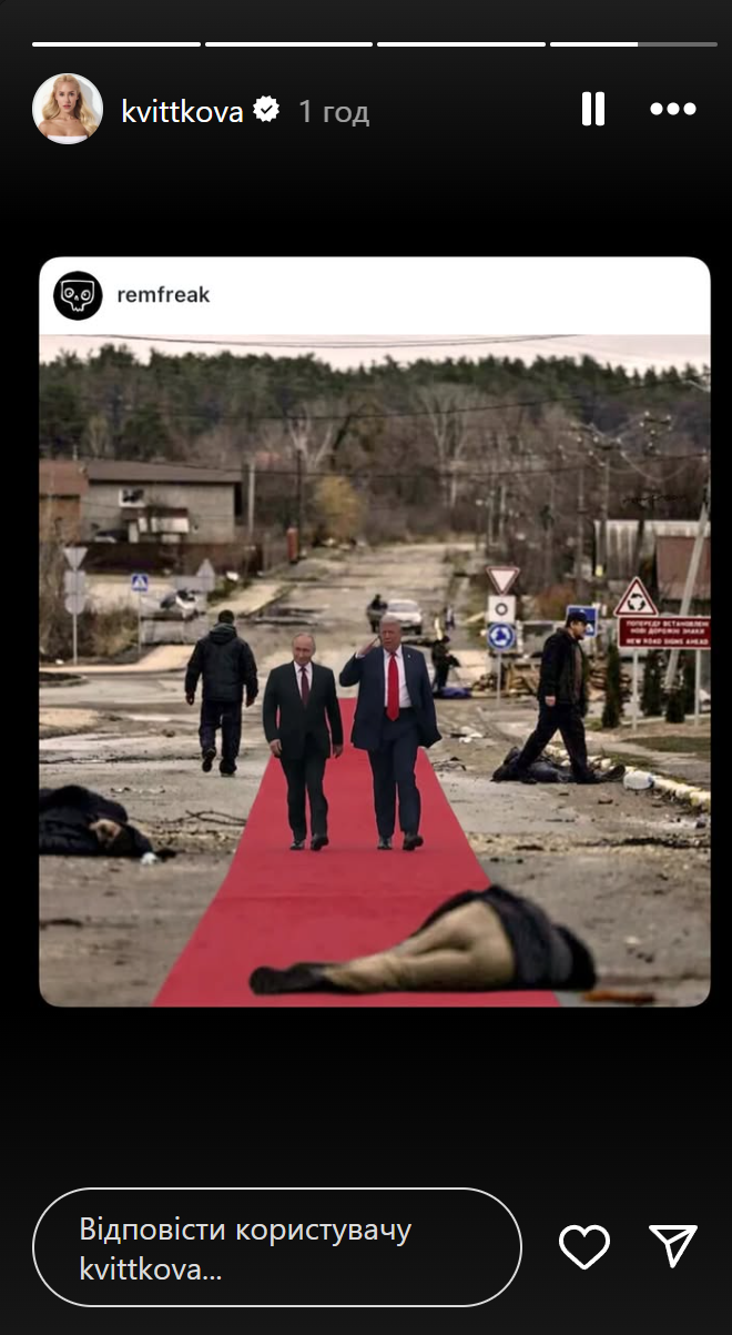 Как другие знаменитости отреагировали на встречу Путина и Трампа / Скриншот из инстаграм-сторис