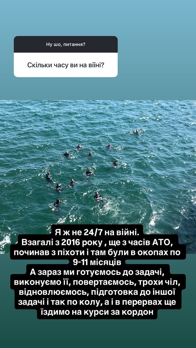 "Я же не 24/7 на войне. Вообще с 2016 года, еще со времен АТО, начинал с пехоты и там были в окопах по 9-11 месяцев. А сейчас мы готовимся к задаче, выполняем ее, возвращаемся, немного отдыха, восстанавливаемся, подготовка к другой задаче и так по кругу, а и в перерывах еще ездим на курсы за границу", – поделился Бабчук.