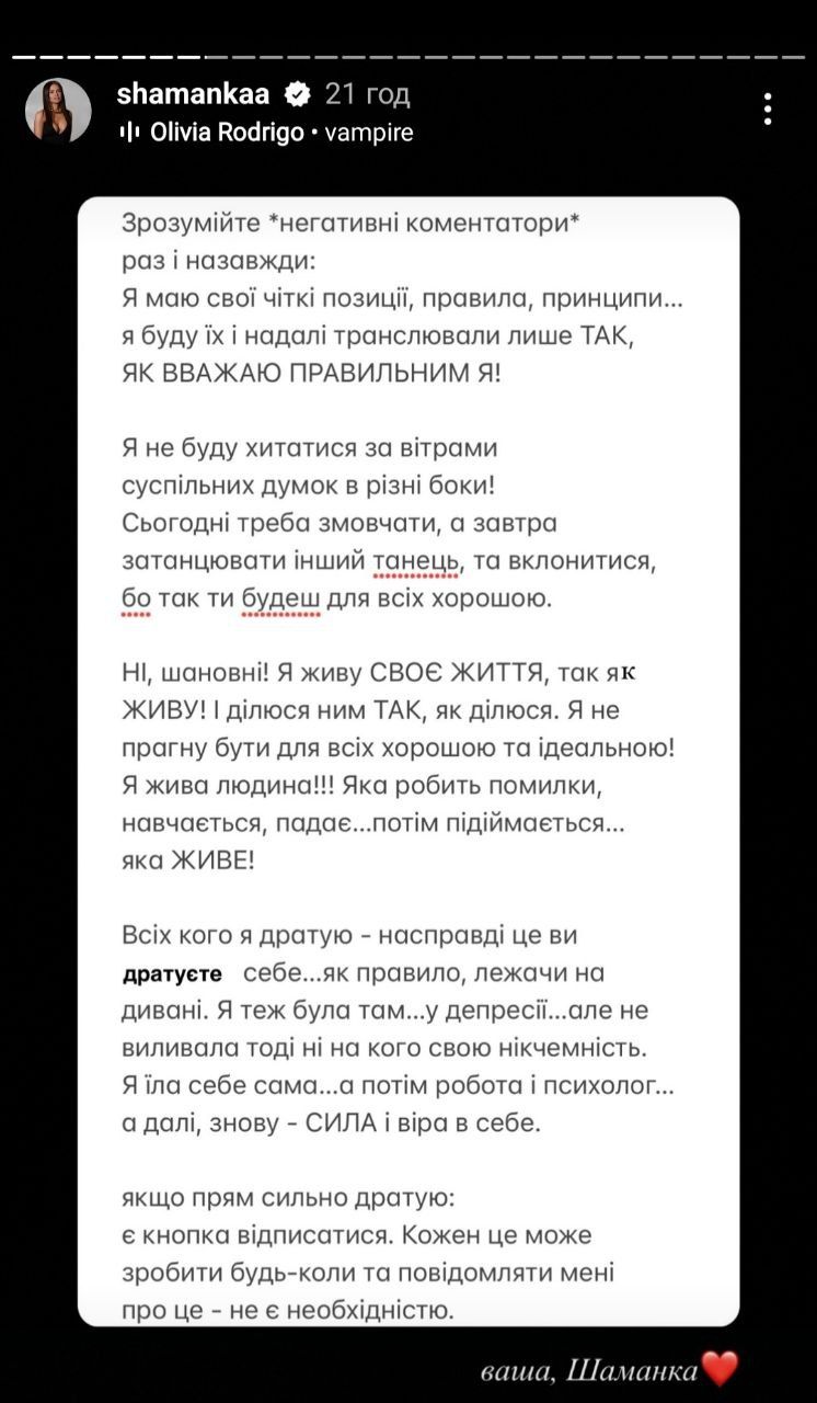 Аліна Шаманська вийшла в сторіс після того, як її захейтили