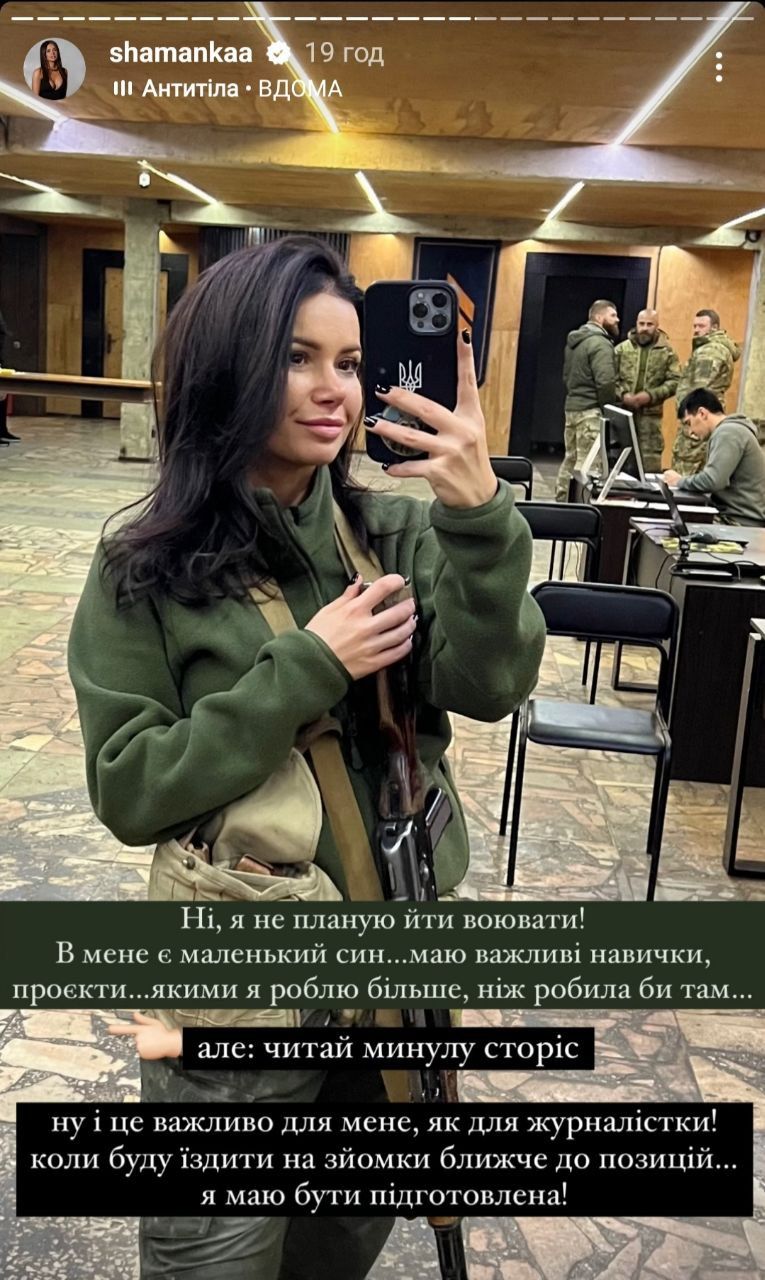 Аліна також додала, що військові навички важливі для неї як для журналістки. Вона написала, що має бути підготовленою, коли буде їздити на зйомки, які проходитимуть ближче до позицій.