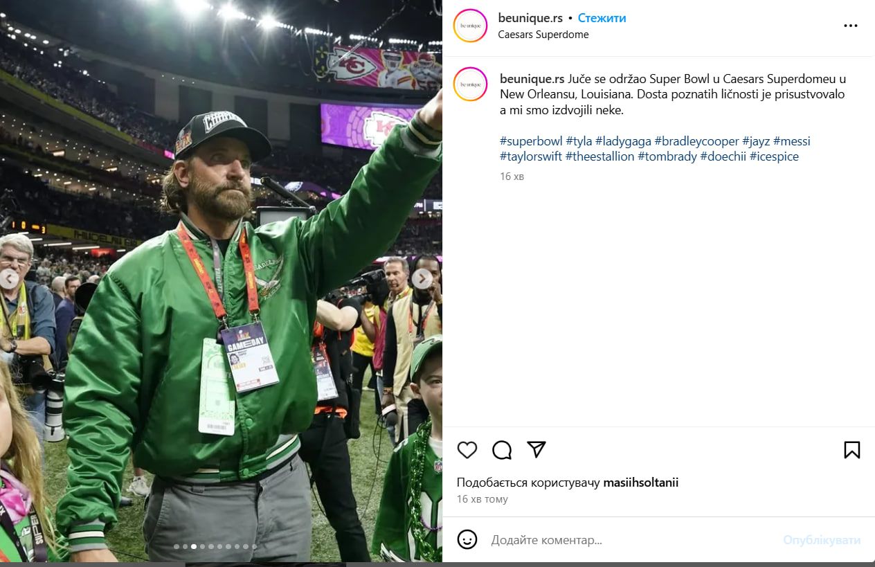 Бредлі Купера, Айс Спайс і Тейлор Свіфт на Супербоулі-2025 / Скриншоти з інстаграму