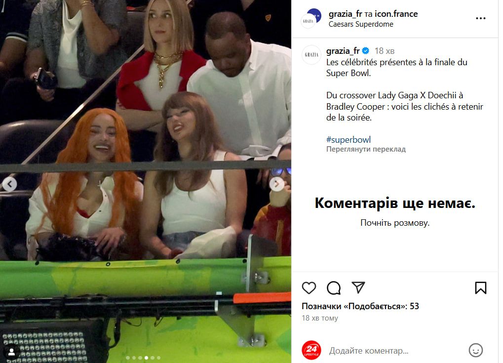 Так, на трибунах і у VIP-ложах помітили Бредлі Купера, а також співачок Айс Спайс і Тейлор Свіфт.