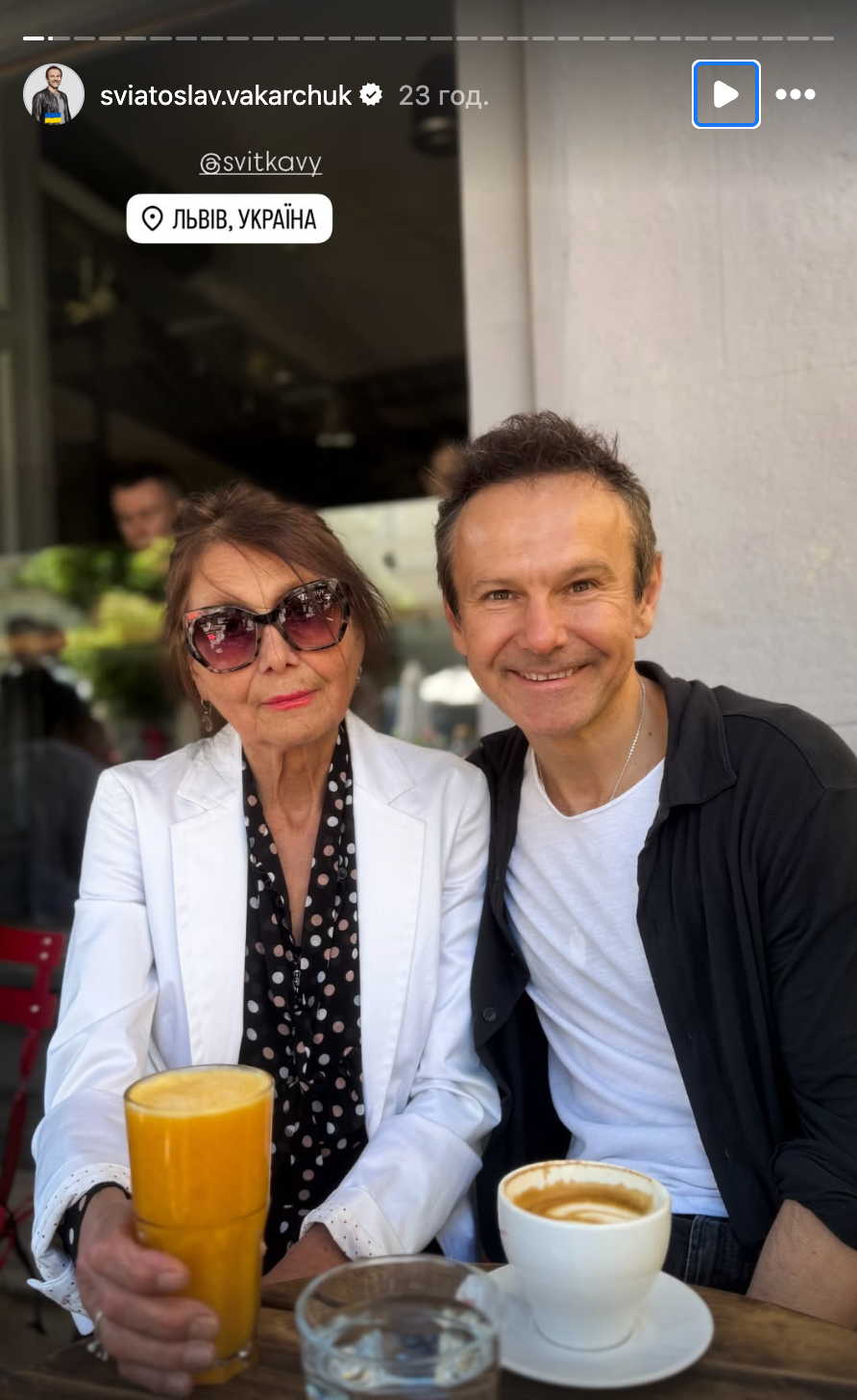 - Вакарчук також поділився в інстаграмі світлиною з матір'ю, з якою провів час за кавою під час короткої поїздки до Львова.
