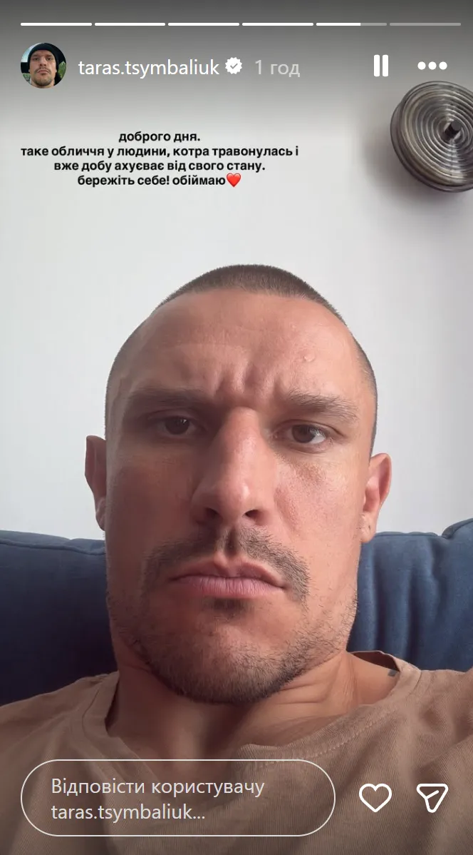 Тарас Цимбалюк отруївся / Скриншот з інстаграм-сторіс