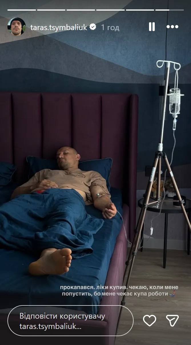 Тарас Цимбалюк під крапельницею / Скриншот з інстаграм-сторіс