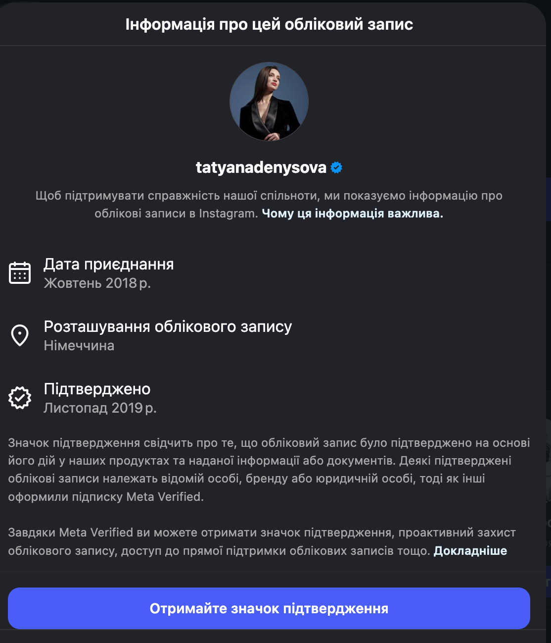 Свої соцмережі жінка зробила приватними, тому неможливо поглянути як вона зараз виглядає і чим займається. Однак в інстаграмі все ж можна побачити геолокацію облікового запису. Там йдеться, що Денисова зараз у Німеччині.