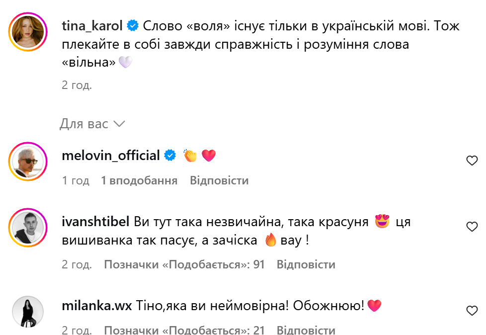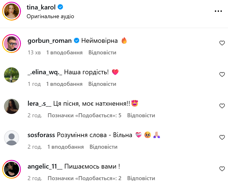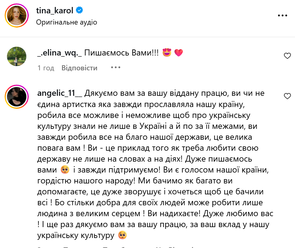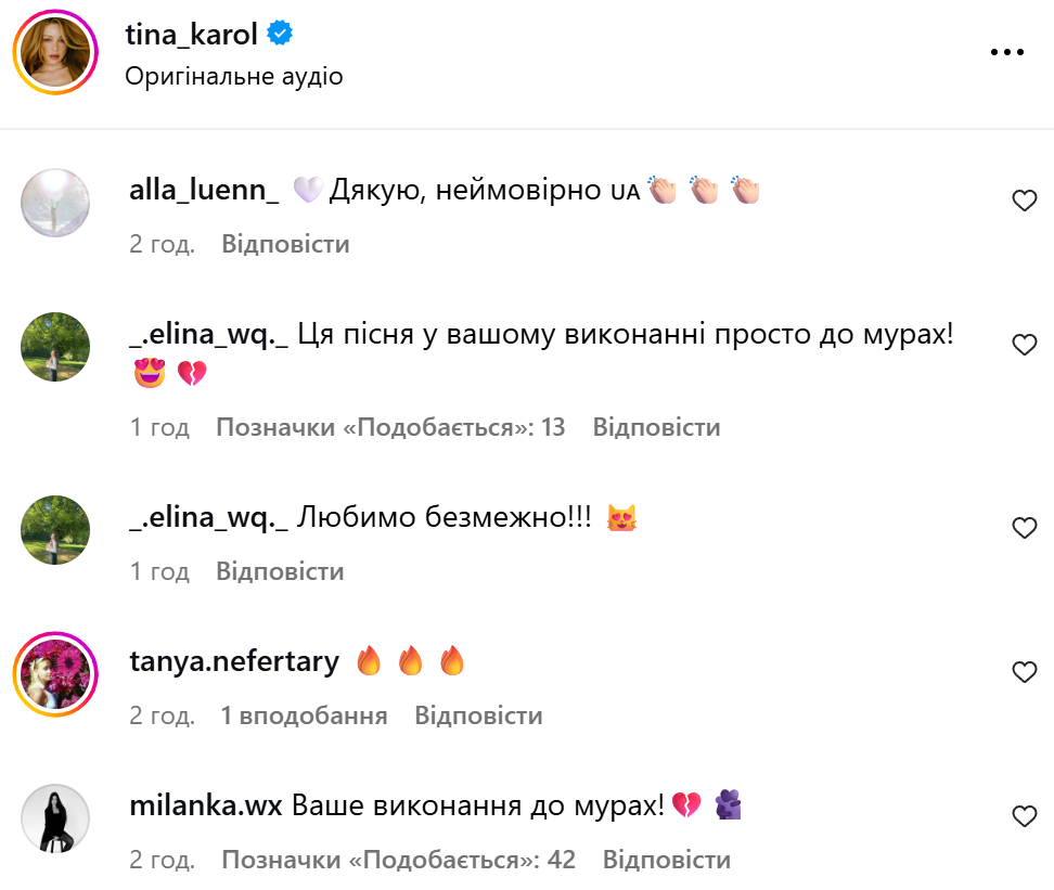 Користувачі в інстаграмі прокоментували виступ Тіни Кароль / Скриншоти з інстаграму
