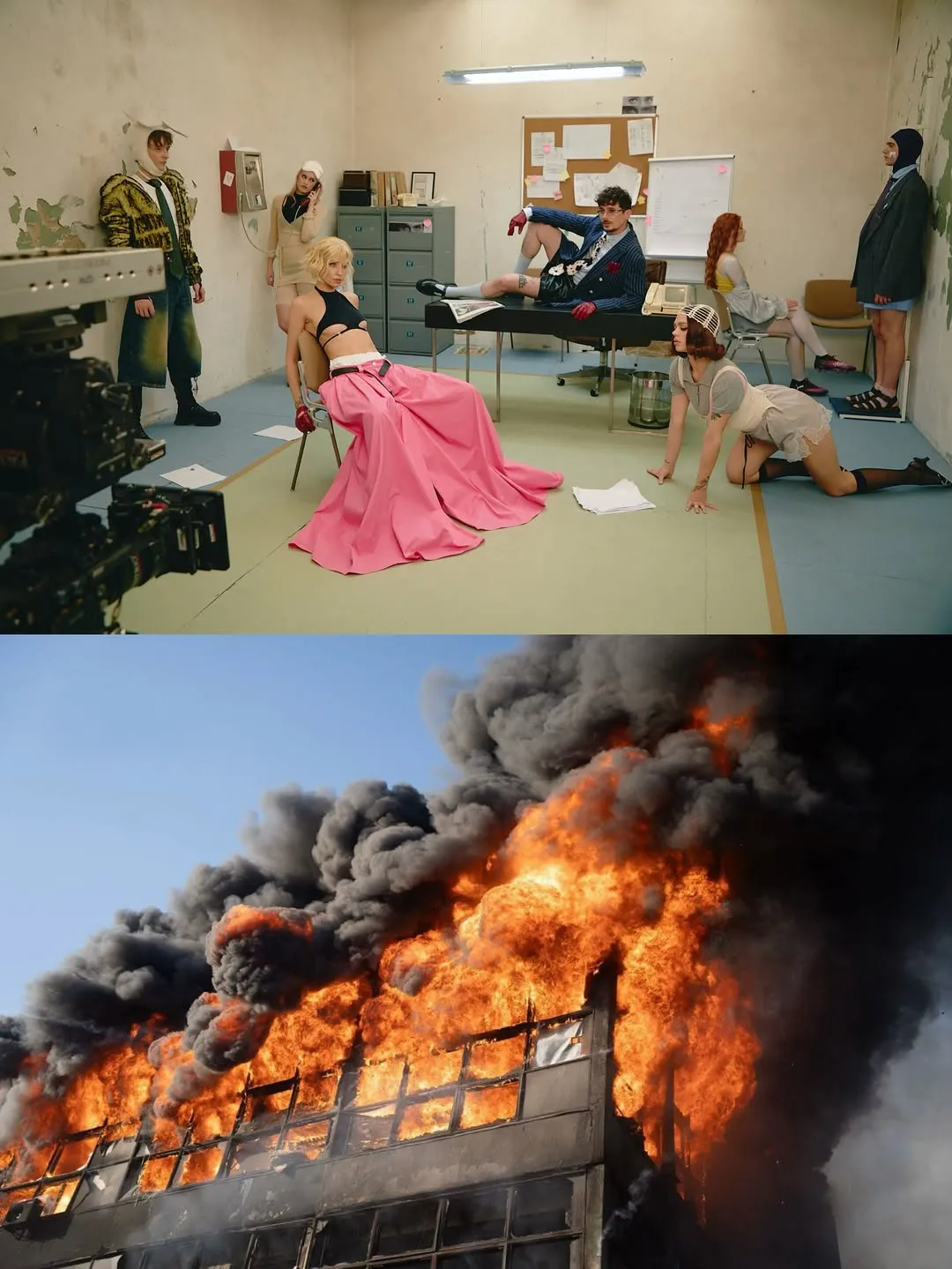 Співачка повідомила, що студію не будуть відновлювати після ракетно-дронової атаки. Та порівняла два фото: перше – кадр з кліпу з Позитивом, друге – моторошну пожежу, що виникла в будівлі.