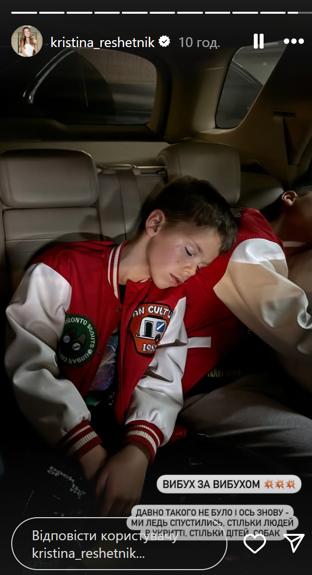 Журналістка теж провела ніч в укритті разом зі своїми собаками. Вона в інстаграм-сторіс подякувала силам ППО за захист.