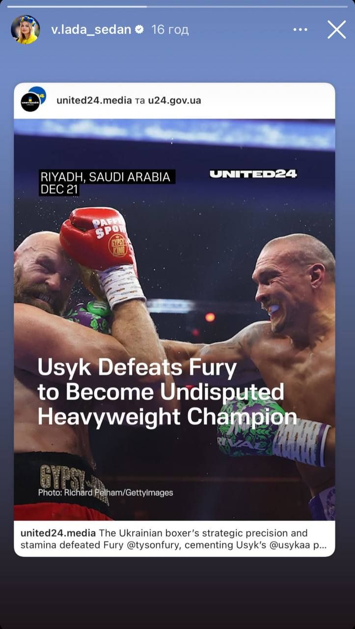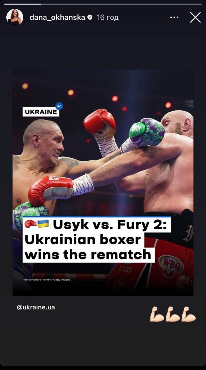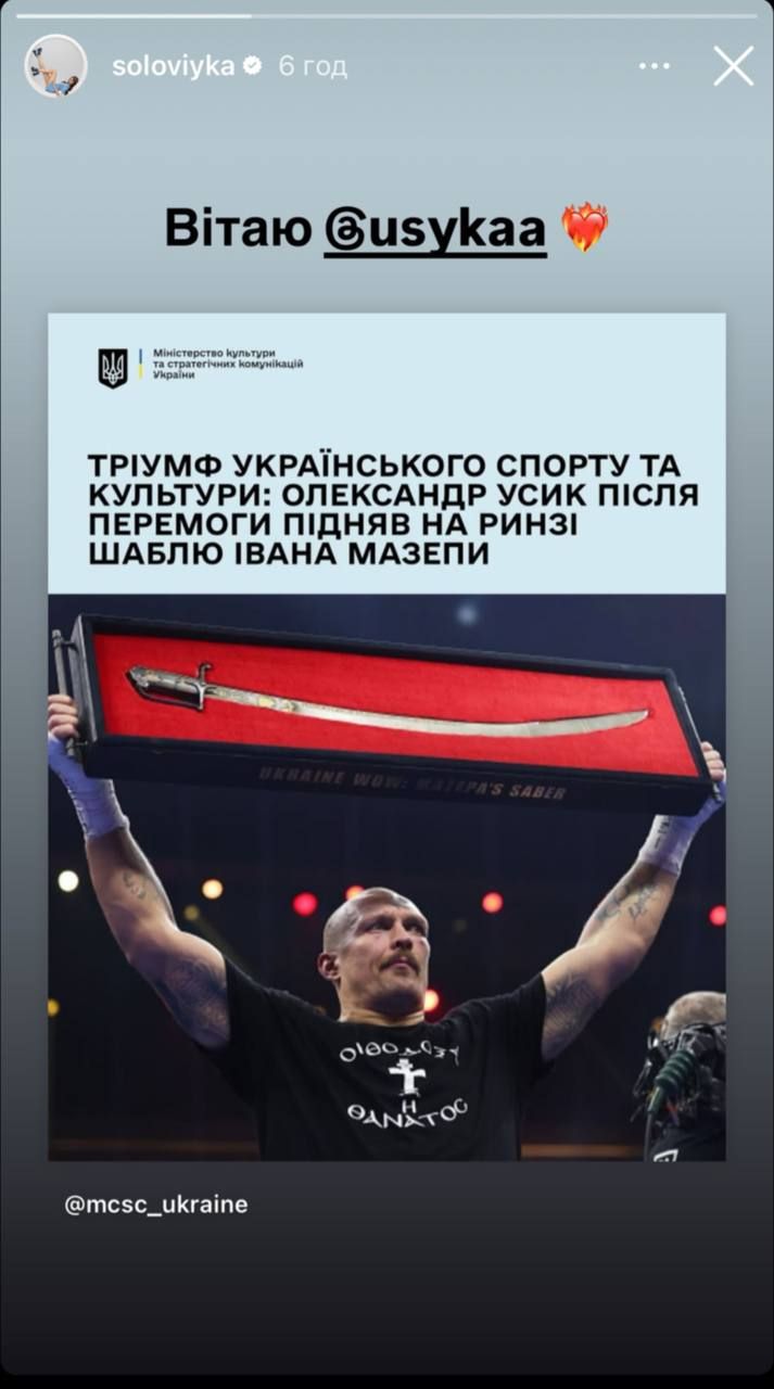 Маша Єфросиніна привітала Усика з перемогою / Скриншот з інстаграм-сторіс