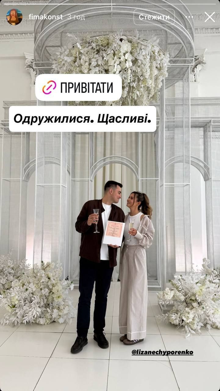 Фіма з коханою обмінялися весільними обітницями. Ліза обрала ніжну весільну сукню з мереживними рукавами та фатою, а чоловік – класичний чорний костюм і білу сорочку.