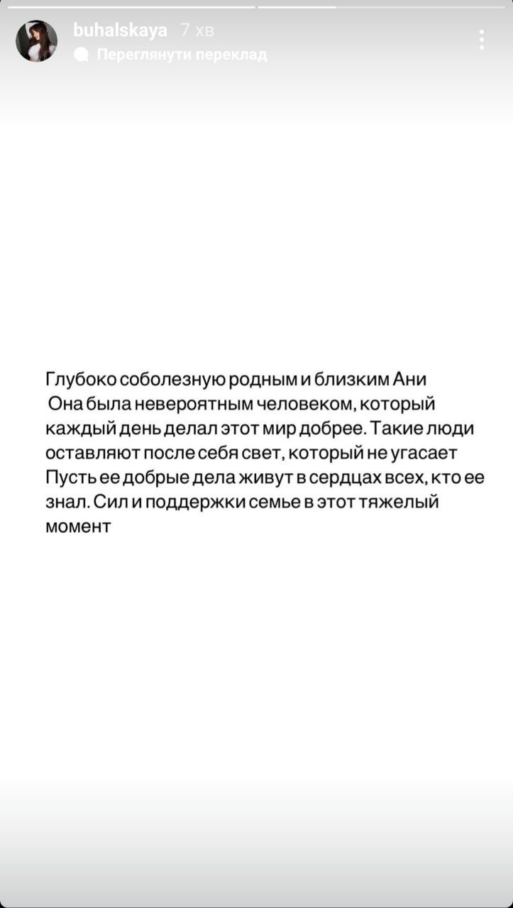 Інформацію про смерть Анни Жук вже підвередила її менеджерка з підбору співпраці у своєму інстаграмі.