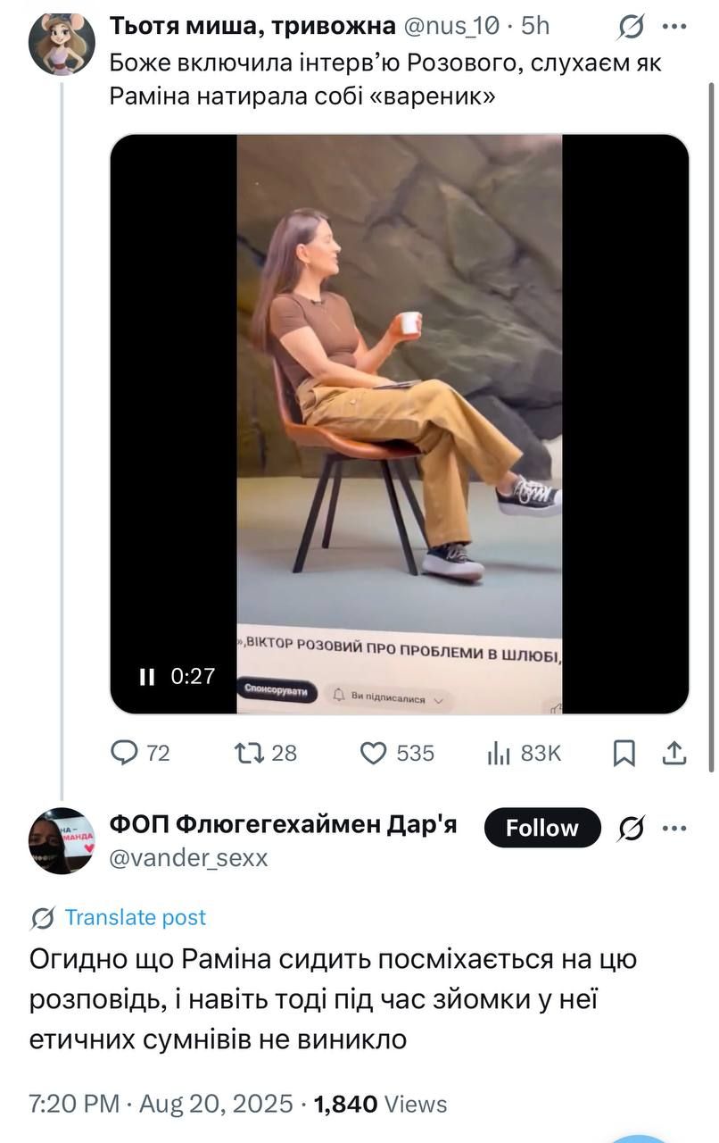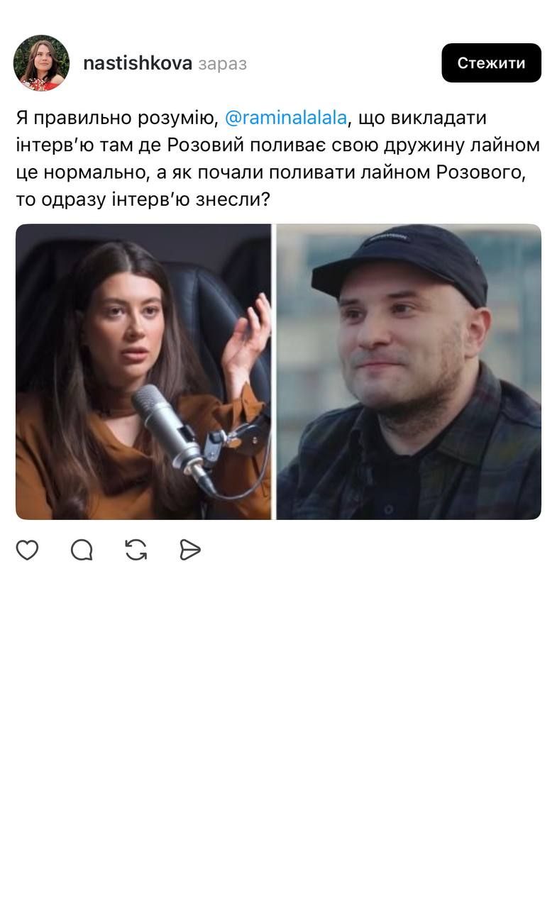 Реакція на інтерв'ю Раміни з Розовим / Скриншоти з соцмереж