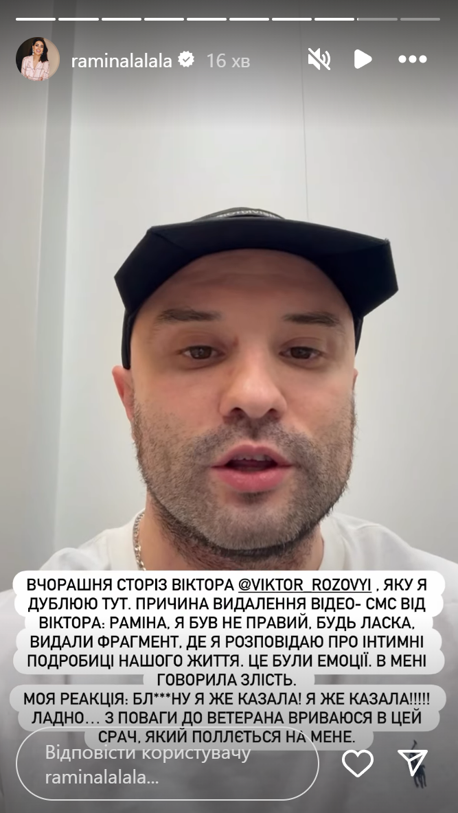 Раміна Есхакзай розповіла про те, чому видаляла інтерв'ю з Віктором Розовим / Скриншот з інстаграм-сторіс