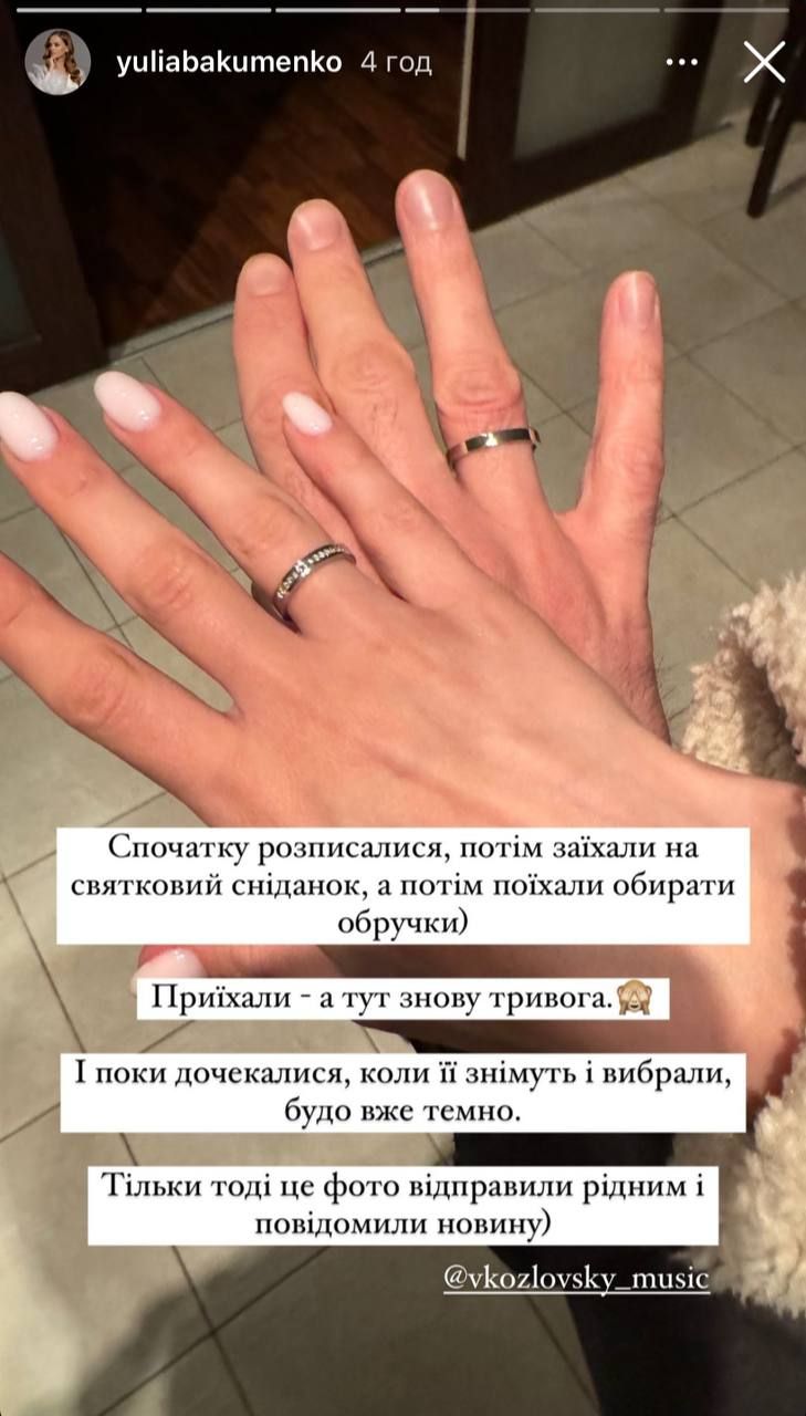Дружина Віталія Козловського розповіла, як вони таємно одружилися / Скриншоти з інстаграм-сторіс