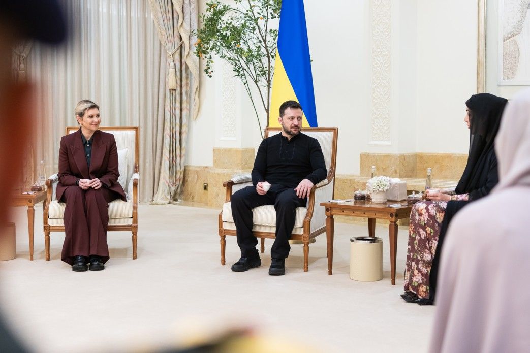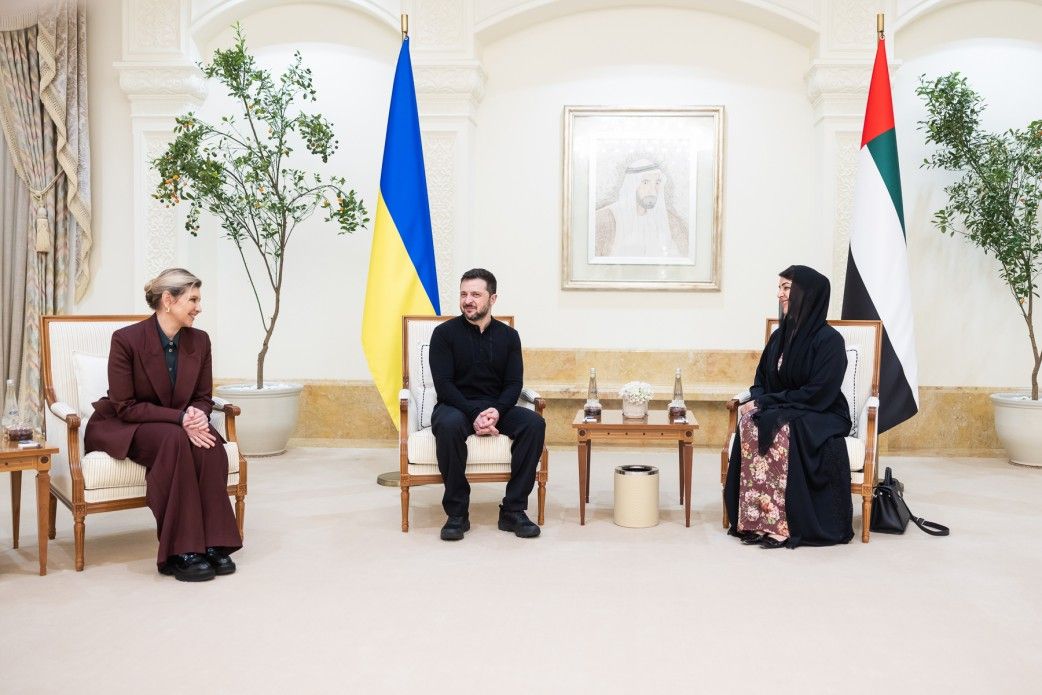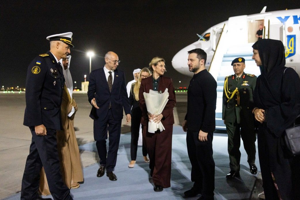- Президента Володимира Зеленського та його дружину зустріла в аеропорту державна міністерка закордонних справ ОАЕ Рім Аль Хашімі.