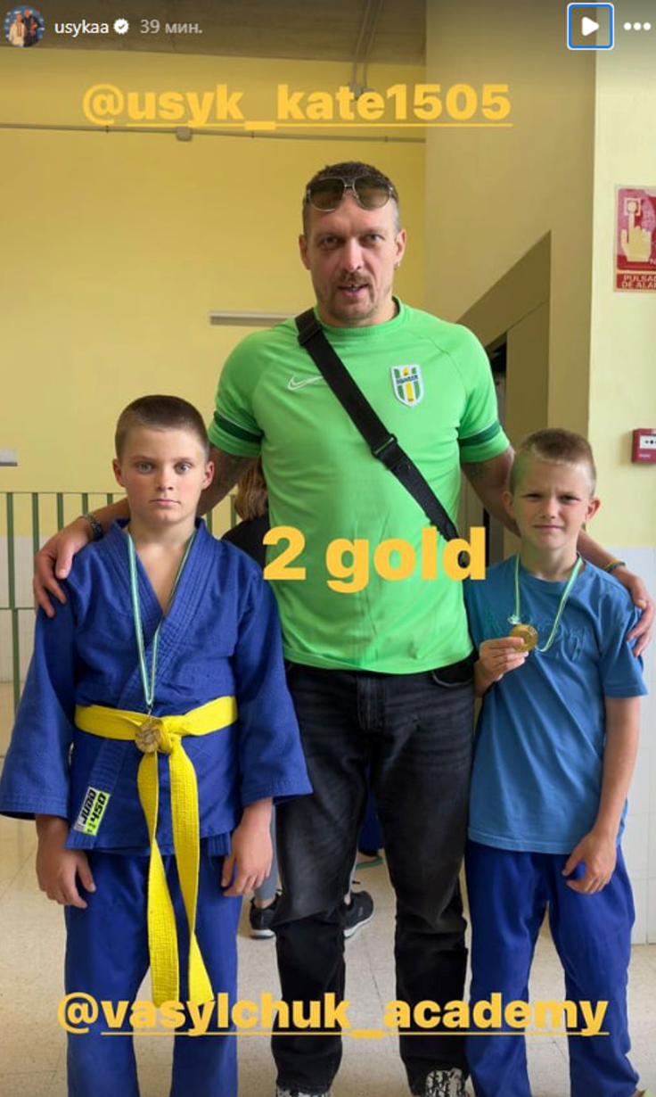 У період підготовки до бою-реваншу з Дюбуа, сини приїхали до тата у тренувальний табір. Олександр з міцними обіймами зустрів своїх нащадків, а хлопці навіть вийшли на ринг.