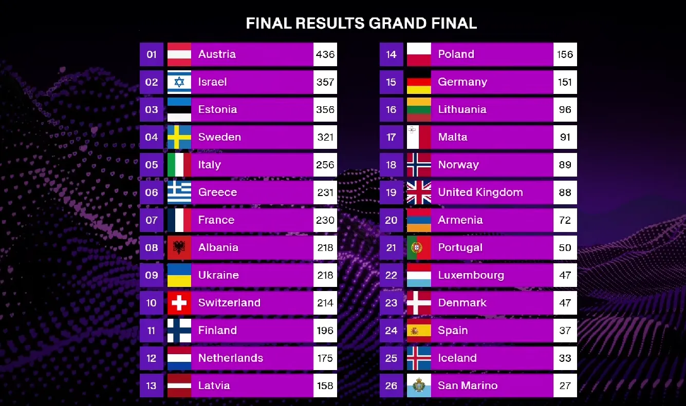 У трійку лідерів цьогорічного пісенного конкурсу також увійшли представники Ізраїлю та Естонії.
