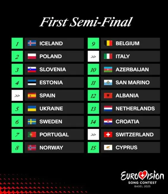 Порядок виступів учасників у першому півфіналі Євробачення-2025 / Фото із сайту Євробачення