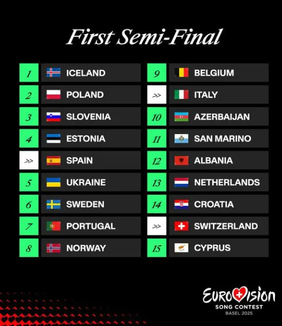 Порядок виступів учасників у першому півфіналі Євробачення-2025 / Фото із сайту Євробачення