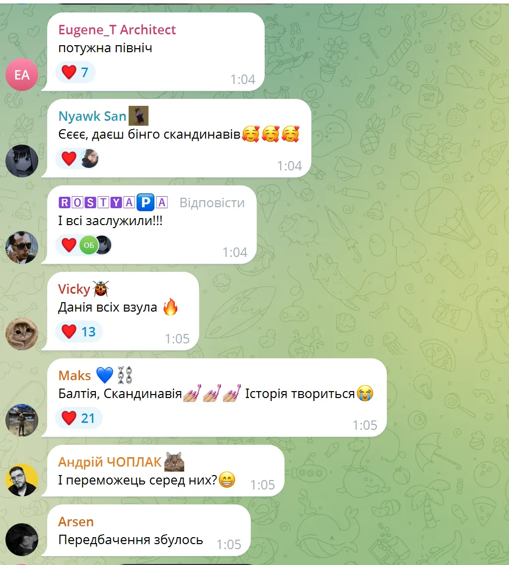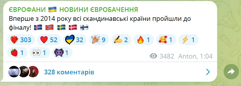 Як українські фанати відреагували на те, що всі скандинавські країни пройшли у фінал Євробачення-2025 / Скриншот з телеграм-каналу
