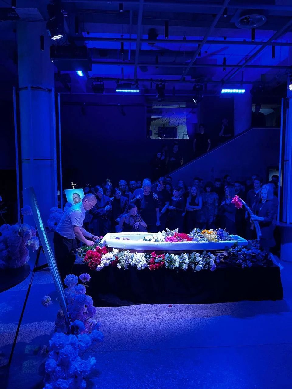 О 11:00 розпочалось прощання у Київському академічному драматичному театрі на Подолі, де працював Юрій Феліпенко до того, як поповнити лави захисників. У театр прийшли близькі та рідні актора. На Андріївському узвозі вишикувалась черга – понад 100 людей хотіли провести Юрія в останню путь.