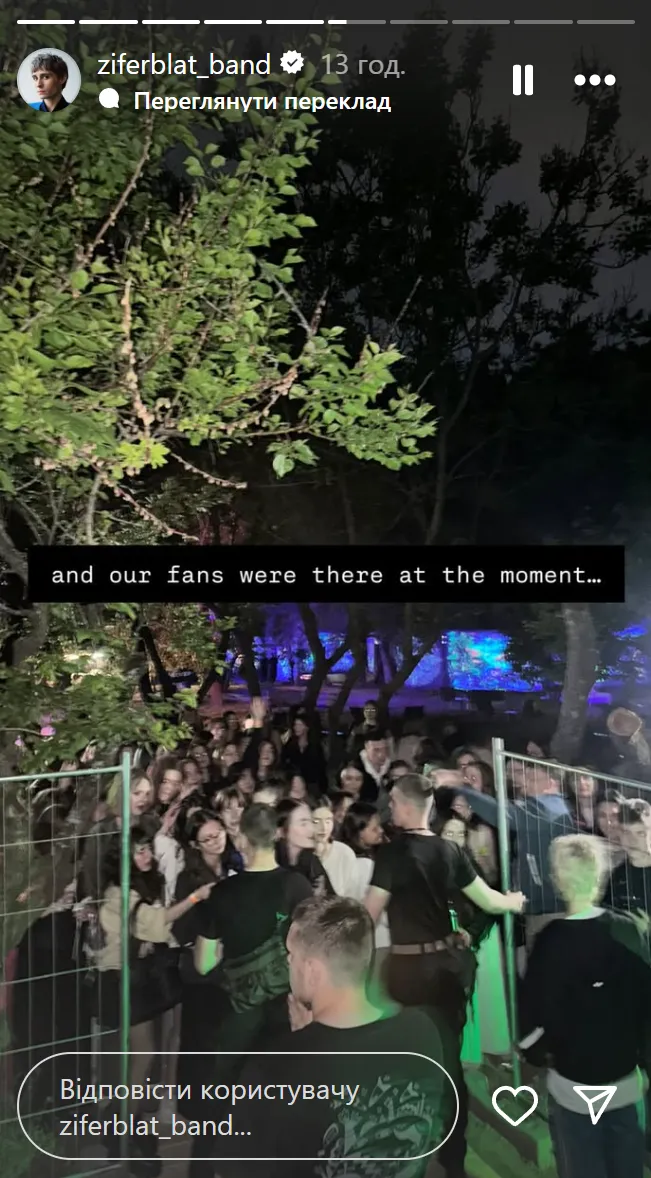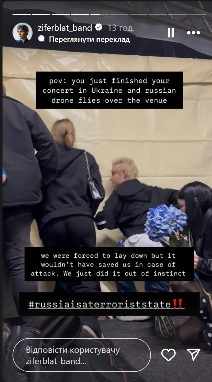 Ziferblat потрапив під атаку російських дронів під час концерту в Києві / Скриншоти з інстаграм-сторіс