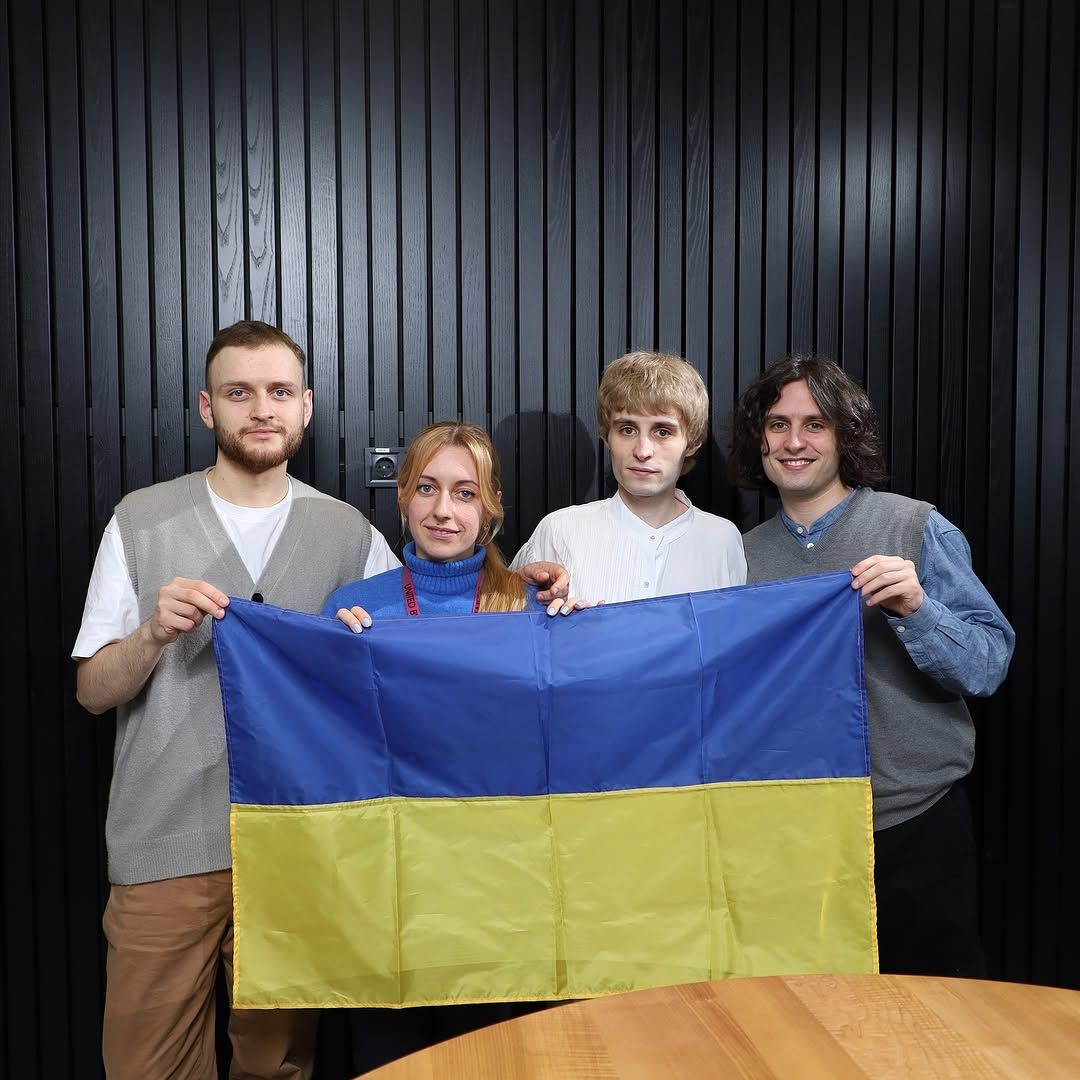 У мережі з'явилися фото учасників гурту з головою делегації України на Євробаченні – Оксаною Скибінською. Даниїл і Валентин Лещинські та Федір Ходаков спершу позували за столом, де підписували договір, а згодом зробили спільні знімки з українським прапором.