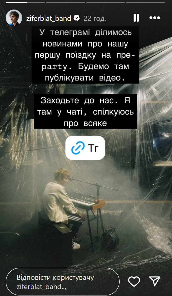 Ziferblat приїхав у Швейцарію / Скриншоти з інстаграм-сторіс гурту та з їхнього телеграм-каналу