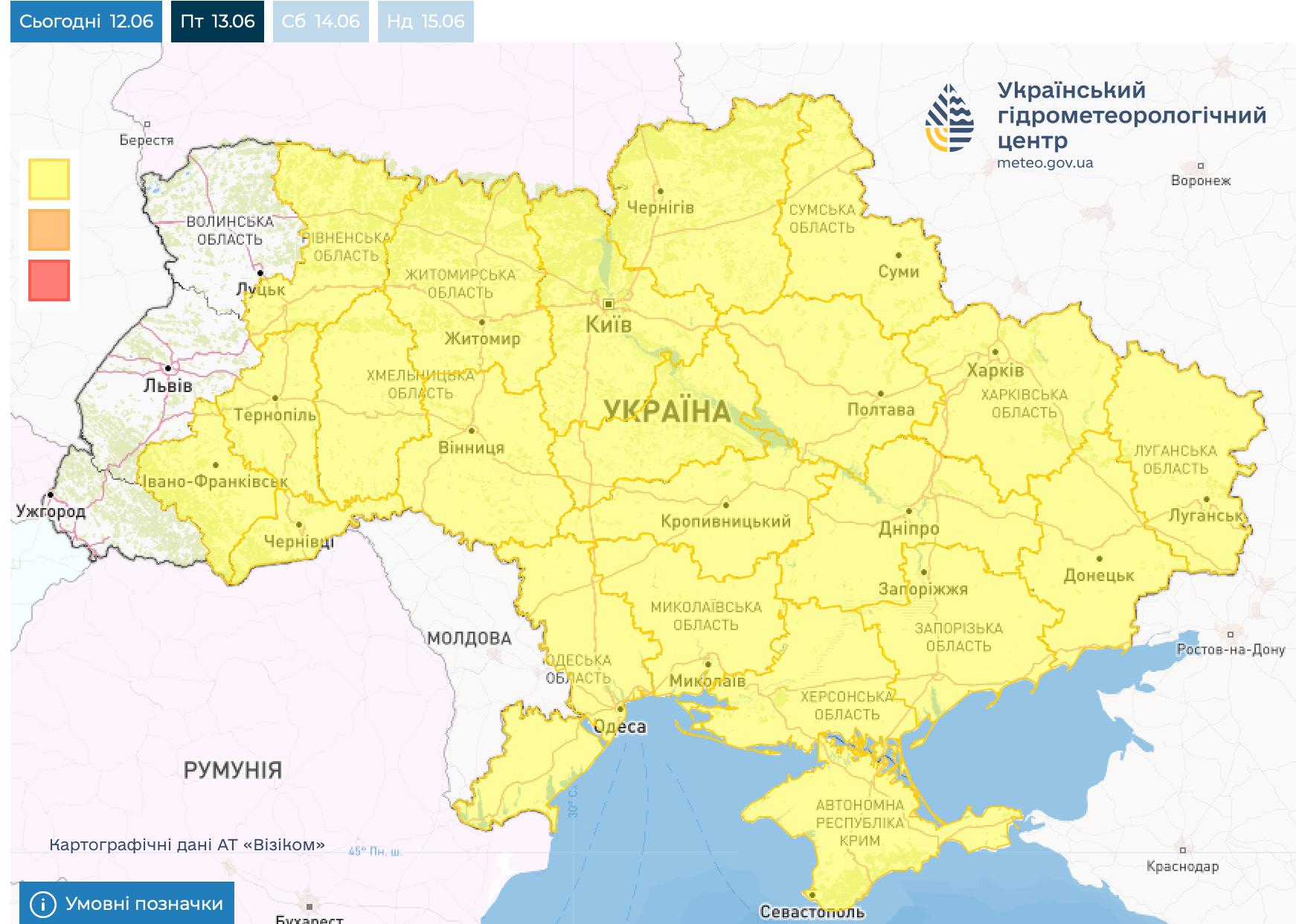 Про це повідомляє 24 Канал з посиланням на Укргідрометцентр.