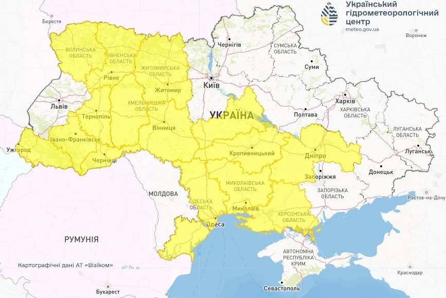 У відповідних регіонах оголошено І рівень небезпеки, жовтий.