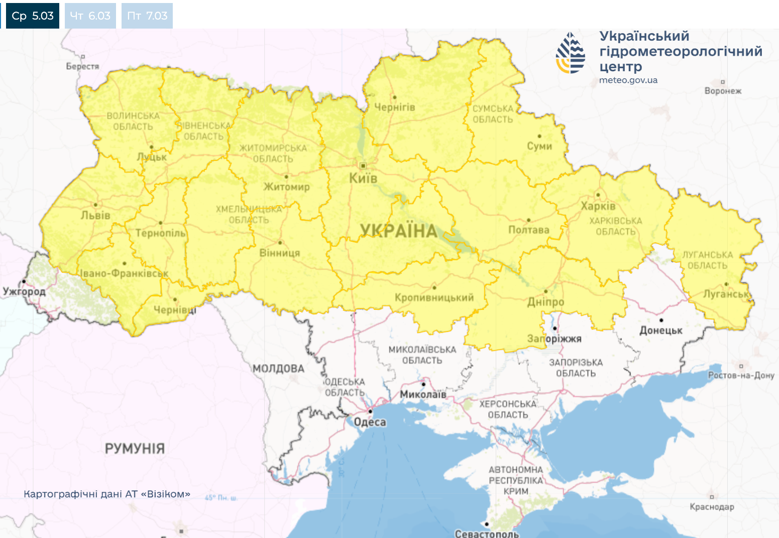 Штормове попередження на 5 березня / Скриншот з Укргідрометцентру