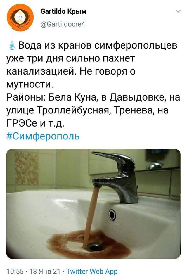 Яка вода тече з кранів у Сімферополі в січні: фото з соцмереж