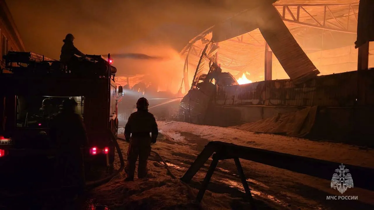 14 березня рятувальники також ліквідують велику пожежу у Свердловській області. Так, у місті Тавда горить металевий ангар на площі 1 600 квадратних метрів.