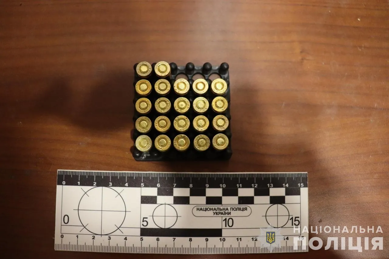 У нього вилучили набої різного калібру, предмет, схожий на стартовий пістолет, два предмети, схожі на гранати, й два запали УЗРГМ, газовий пістолет й інші заборонені предмети.